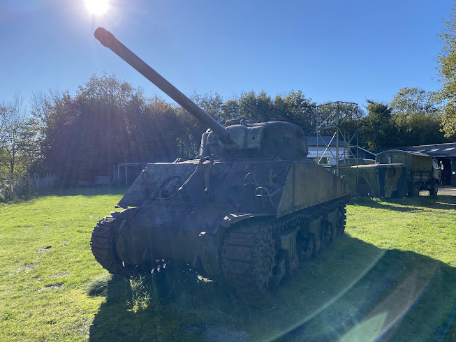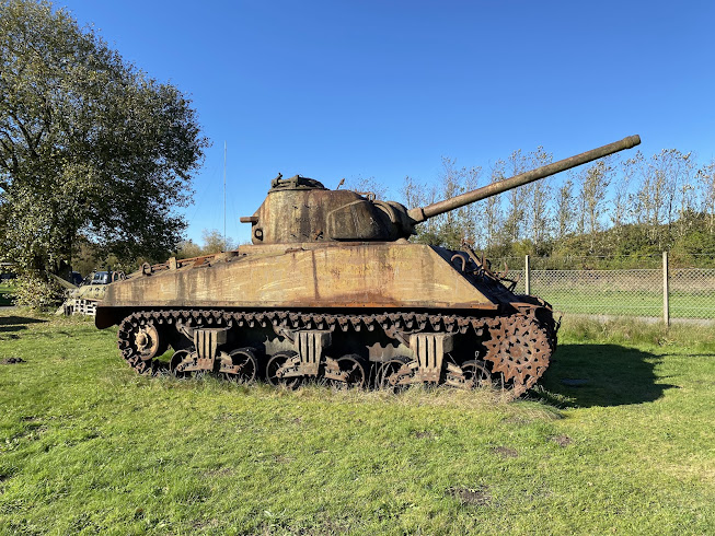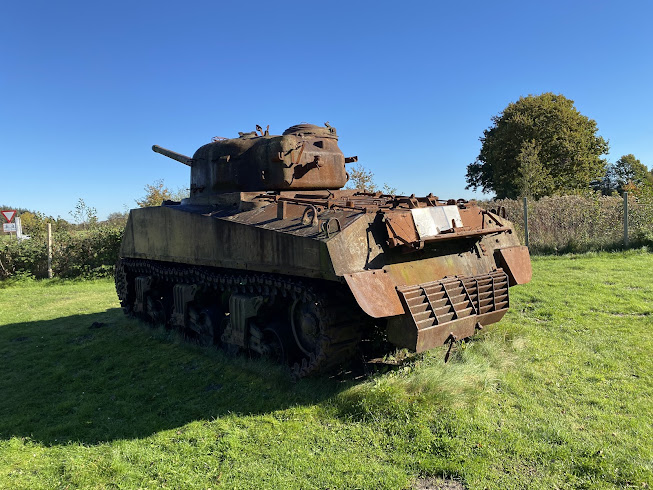 Dette er en Sherman tanks. Såpass gjenkjennelig var den, men samtidig noe snodig med utseendet. Heldigvis hadde de litt info så en nysgjerrig stakkar ble tilfredstillt.